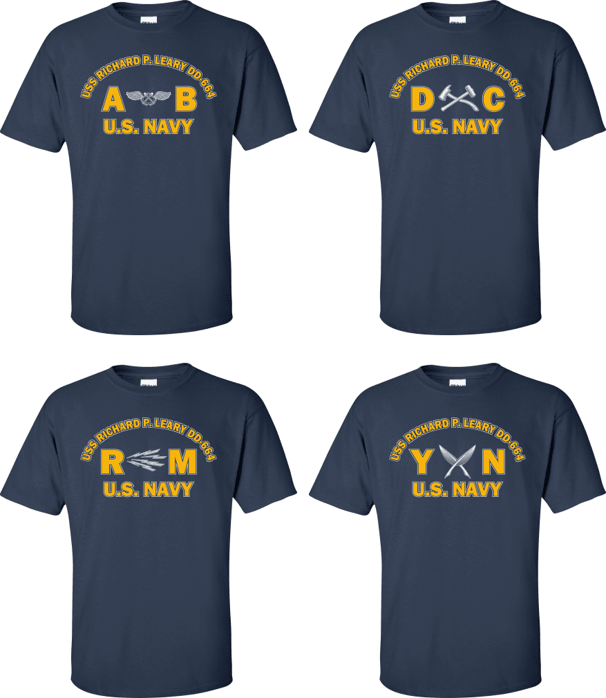 Due to disruptions in supply chains, this design will be embroidered on a Champion, Gildan, Jerzees or comparable brand.Proudly display your ship and rate with our top quality USS RICHARD P. LEARY DD-664 Rates t-shirts, sweatshirts, and hoodies. These fine U.S. Navy apparel items will make you the envy of your veteran buddies, or will make a fine gift! Our USS RICHARD P. LEARY DD-664 shirts are proudly printed in the USA!