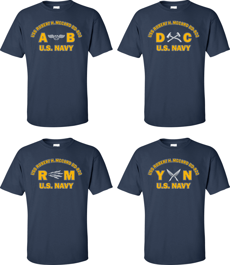 Due to disruptions in supply chains, this design will be embroidered on a Champion, Gildan, Jerzees or comparable brand.Proudly display your ship and rate with our top quality USS ROBERT H. MCCARD DD-822 Rates t-shirts, sweatshirts, and hoodies. These fine U.S. Navy apparel items will make you the envy of your veteran buddies, or will make a fine gift! Our USS ROBERT H. MCCARD DD-822 shirts are proudly printed in the USA!