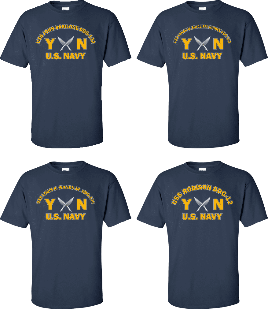 Due to disruptions in supply chains, this design will be embroidered on a Champion, Gildan, Jerzees or comparable brand.Proudly display your ship and rate with our top quality USS ROBISON DDG-12 Rates t-shirts, sweatshirts, and hoodies. These fine U.S. Navy apparel items will make you the envy of your veteran buddies, or will make a fine gift! Our USS ROBISON DDG-12 shirts are proudly printed in the USA!
