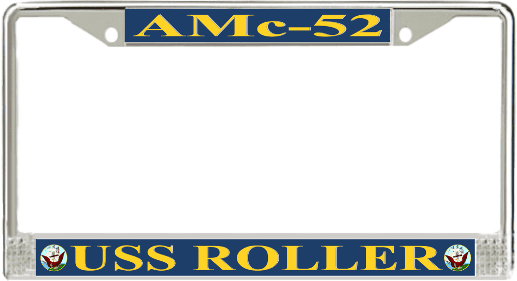 USS Roller AMc-52 License Plate FrameThis USS Roller AMc-52 License Plate Frame is proudly made in the USA at our facilities in Scottsboro, Alabama. Each of our MilitaryBest U.S. Navy Frames feature top and bottom Poly Coated Aluminum strips that are printed using sublimation which gives these quality automobile military frames a beautiful high gloss finish.