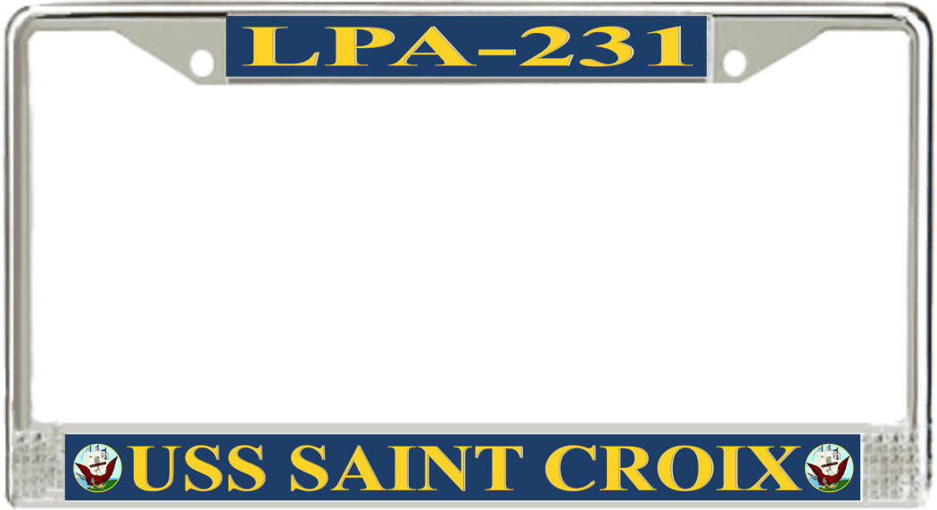 USS Saint Croix LPA-231 License Plate frameThis USS Saint Croix LPA-231 License Plate frame is proudly made in the USA at our facilities in Scottsboro, Alabama. Each of our MilitaryBest U.S. Navy Frames feature top and bottom Poly Coated Aluminum strips that are printed using sublimation which gives these quality automobile military frames a beautiful high gloss finish.