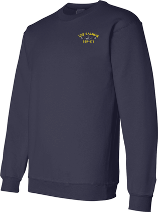 MilitaryBest has expanded its line of apparel with this custom embroidered USS Salmon SSR-573 with Dolphins Embroidered Sweatshirt. This Sweatshirt will make an excellent addition to your wardrobe, or a great gift. Your satisfaction is Guaranteed! These quality sweatshirts are proudly embroidered at our facilities in Scottsboro, AL. Support the Army MWR program by purchasing only from Licensed Vendors.