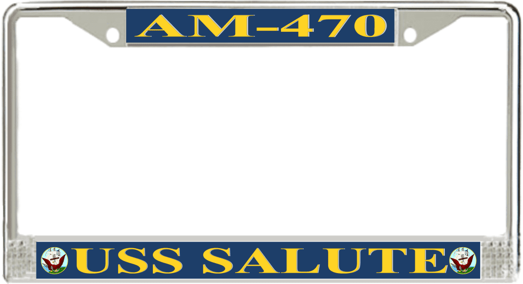 USS Salute AM-470 License Plate FrameUSS Salute AM-470 License Plate FrameUSS Salute AM-470 License Plate Frame