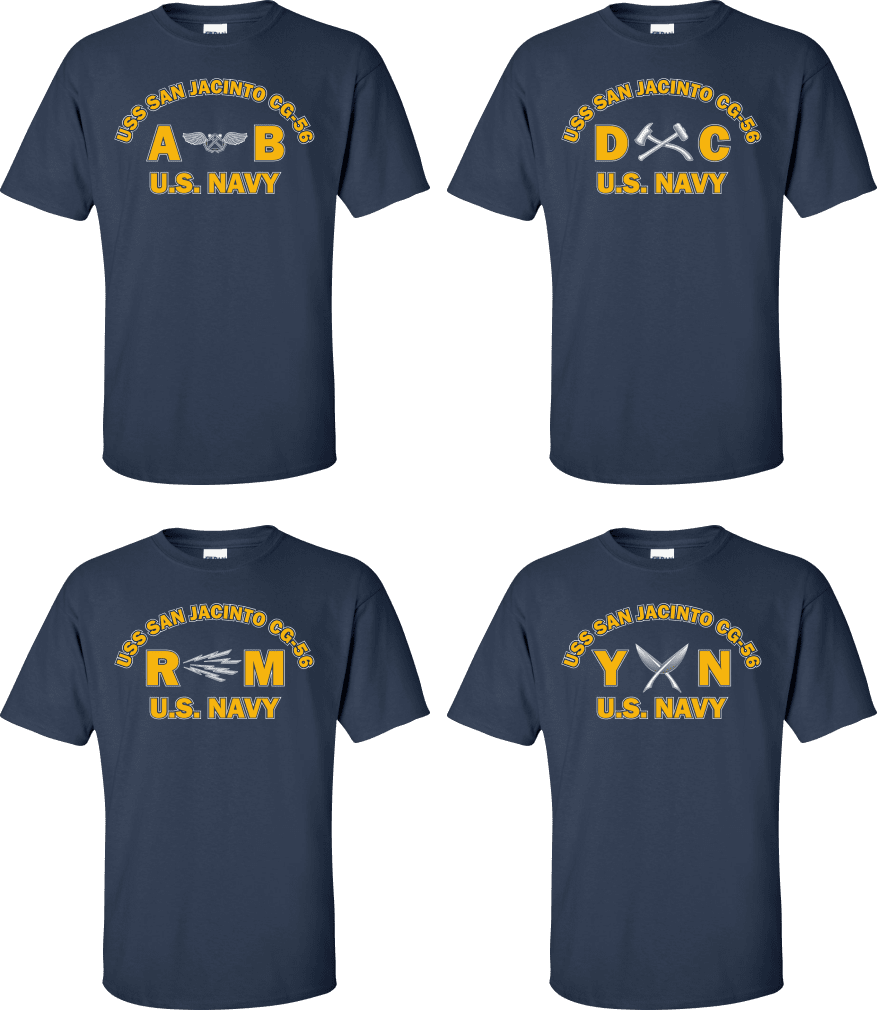 Due to disruptions in supply chains, this design will be embroidered on a Champion, Gildan, Jerzees or comparable brand.Proudly display your ship and rate with our top quality USS SAN JACINTO CG-56 Rates t-shirts, sweatshirts, and hoodies. These fine U.S. Navy apparel items will make you the envy of your veteran buddies, or will make a fine gift! Our USS SAN JACINTO CG-56 shirts are proudly printed in the USA!