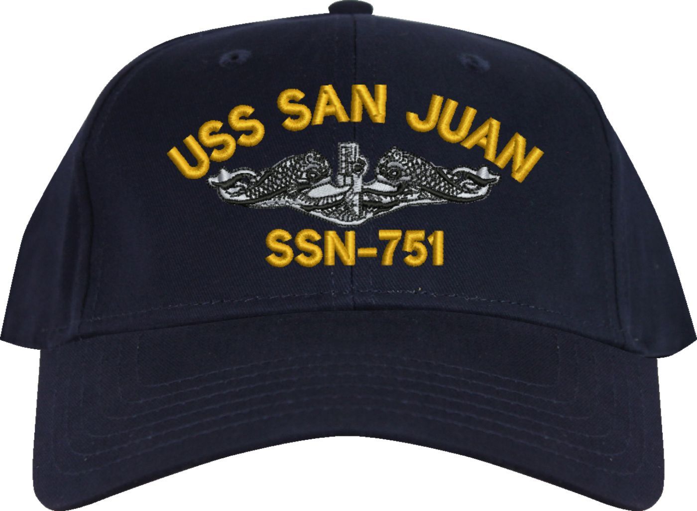 This USS San Juan SSN-751 w/ Silver Dolphins Navy Blue Low-Profile Cap (Made in the USA) is an overstock item and is only available for the value price while supplies last. Clearance Items are not eligible for Refunds or Returns,A percentage of the sale of each MilitaryBest item is forwarded to the licensing departments of each respective branch of service in support of the MWR (Morale, Welfare, & Recreation) program. These payments are made by either ALL4U LLC or the wholesaler from where the item originated. Our team thanks you for your service and your support of these programs.