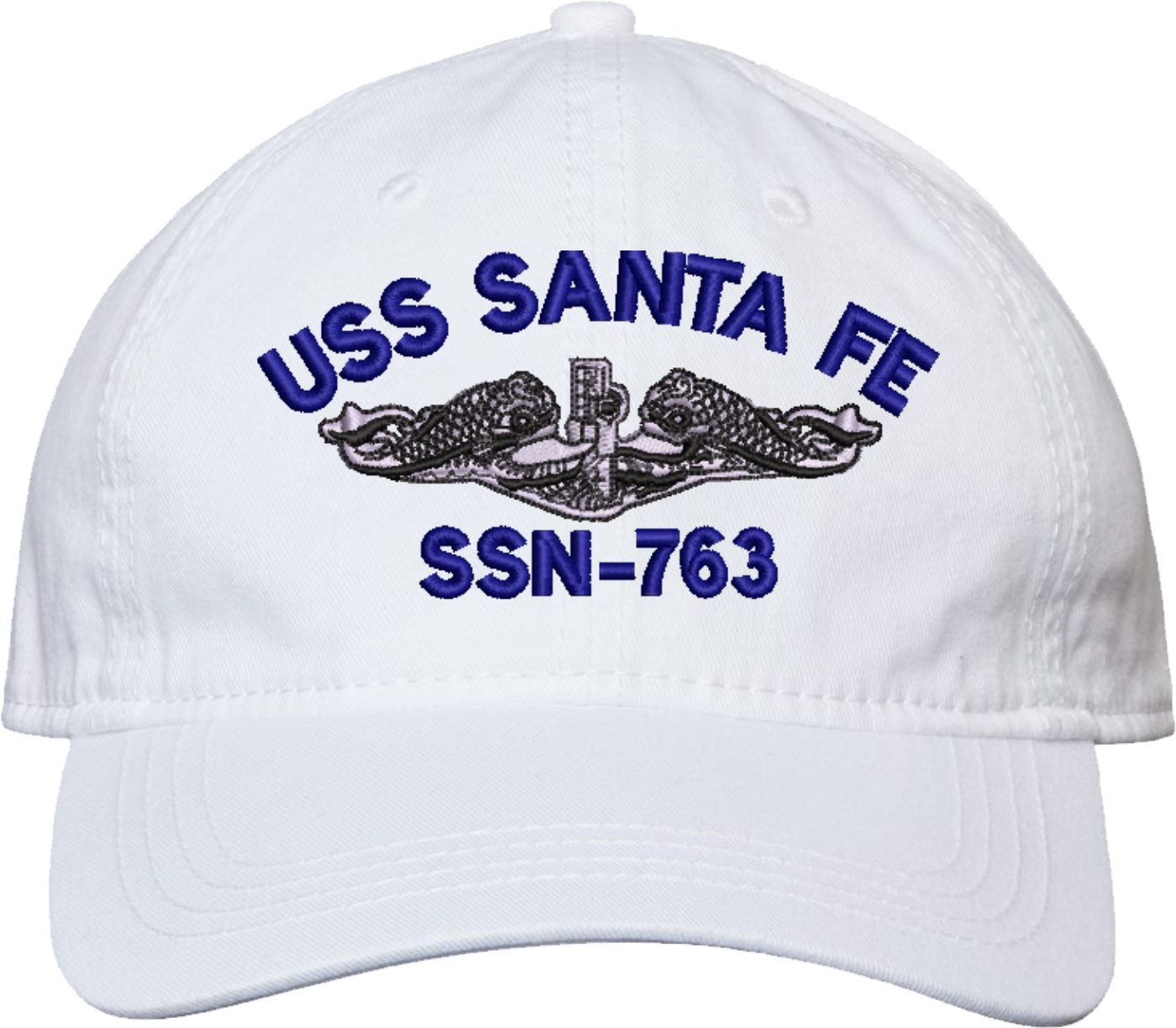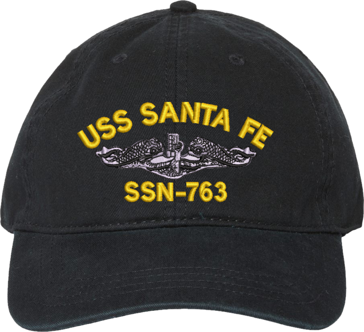 Show your Navy pride with this USS Santa Fe SSN-763 with Dolphins Unstructured Dad Cap from MilitaryBest. Crafted from 100% washed chino twill cotton, this six-panel, low-profile cap offers a relaxed and comfortable fit. Featuring high-quality embroidery done in our Scottsboro, Alabama facility, this cap is designed with a pre-curved visor and an adjustable tri-glide buckle closure for a perfect fit. Whether for everyday wear or as a meaningful gift, this cap is a great way to honor your own or a loved one's service.For caps ordered with custom embroidered personalized text please allow an additional 3 to 5 days production time. All custom back text will be embroidered in ALL CAPITAL LETTERS. Caps with back text or eggs are non-returnable unless there is a material defect in the cap.
