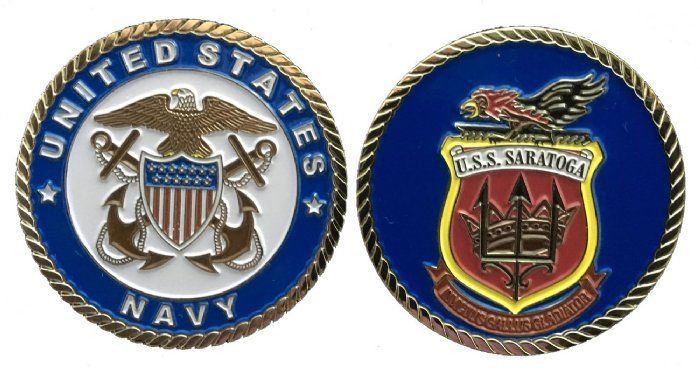 This USS Saratoga Challenge Coin Officer measures 1-3/4 inches and is made from a bronze alloy with a brilliantly colored nickel finish. This Challenge Coin would make a wonderful addition to your collection or a great gift. Its quality is guaranteed.Does NOT Fit in Acrylic Single 1 5/8" Challenge Coin Display Case