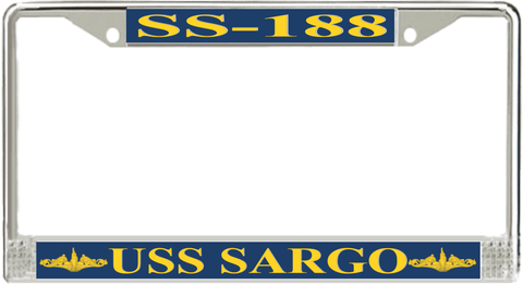 USS Sargo SS-188 License Plate Frame This USS Sargo SS-188 License Plate Frame is proudly made in the USA at our facilities in Scottsboro, Alabama. Each Frame features top and bottom sublimated design strips that are poly coated for a protective gloss finish. Please check your state and local regulations for compatibility of these frames for use on your vehicle.