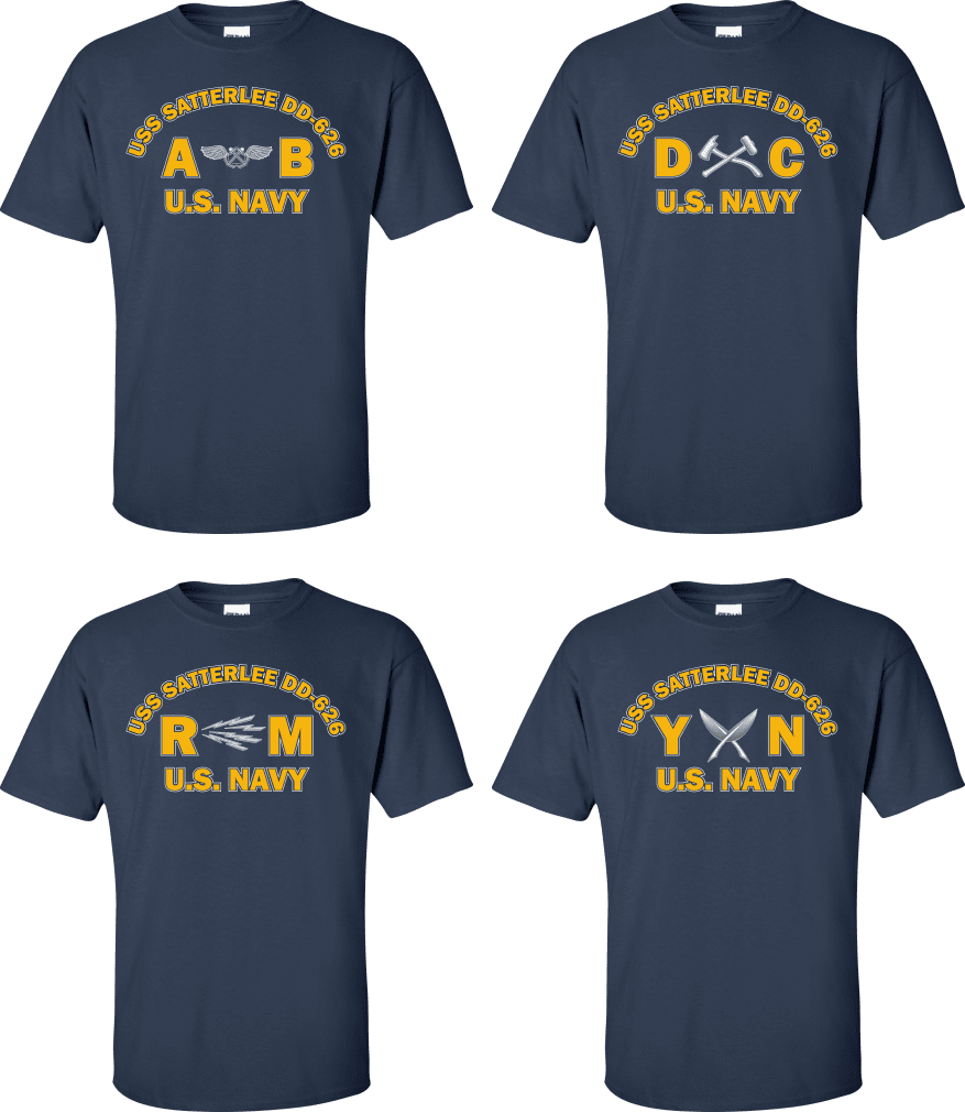Due to disruptions in supply chains, this design will be embroidered on a Champion, Gildan, Jerzees or comparable brand.Proudly display your ship and rate with our top quality USS SATTERLEE DD-626 Rates t-shirts, sweatshirts, and hoodies. These fine U.S. Navy apparel items will make you the envy of your veteran buddies, or will make a fine gift! Our USS SATTERLEE DD-626 shirts are proudly printed in the USA!