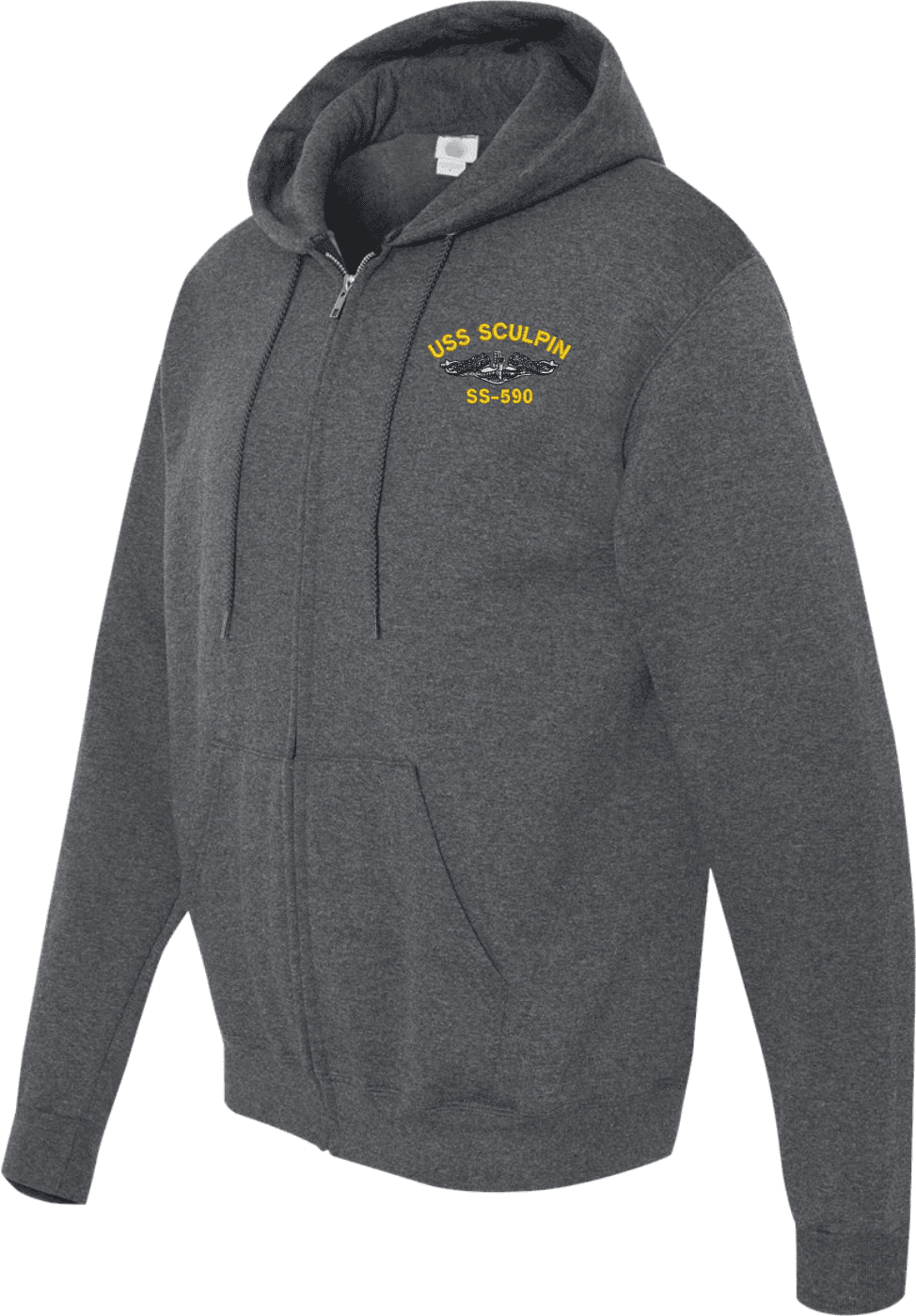 MilitaryBest has expanded its line of apparel with this custom embroidered USS Sculpin SS-590 with Dolphins Embroidered Zippered Hoodie. Each Hoodie is direct embroidered onto a Champion brand 9.5 oz 50/50 Cotton Poly blend. This will make an excellent addition to your wardrobe, or a great gift. Your satisfaction is Guaranteed! These quality zippered hoodies are proudly embroidered at our facilities in Scottsboro, AL. Support the Army MWR program by purchasing only from Licensed Vendors.