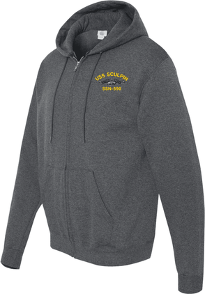 MilitaryBest has expanded its line of apparel with this custom embroidered USS Sculpin SSN-590 with Dolphins Embroidered Zippered Hoodie. Each Hoodie is direct embroidered onto a Champion brand 9.5 oz 50/50 Cotton Poly blend. This will make an excellent addition to your wardrobe, or a great gift. Your satisfaction is Guaranteed! These quality zippered hoodies are proudly embroidered at our facilities in Scottsboro, AL. Support the Army MWR program by purchasing only from Licensed Vendors.
