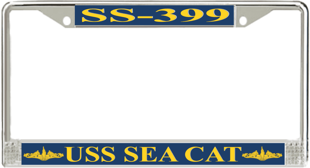 USS Sea Cat SS-399 License Plate Frame This USS Sea Cat SS-399 License Plate Frame is proudly made in the USA at our facilities in Scottsboro, Alabama. Each Frame features top and bottom sublimated design strips that are poly coated for a protective gloss finish. Please check your state and local regulations for compatibility of these frames for use on your vehicle.