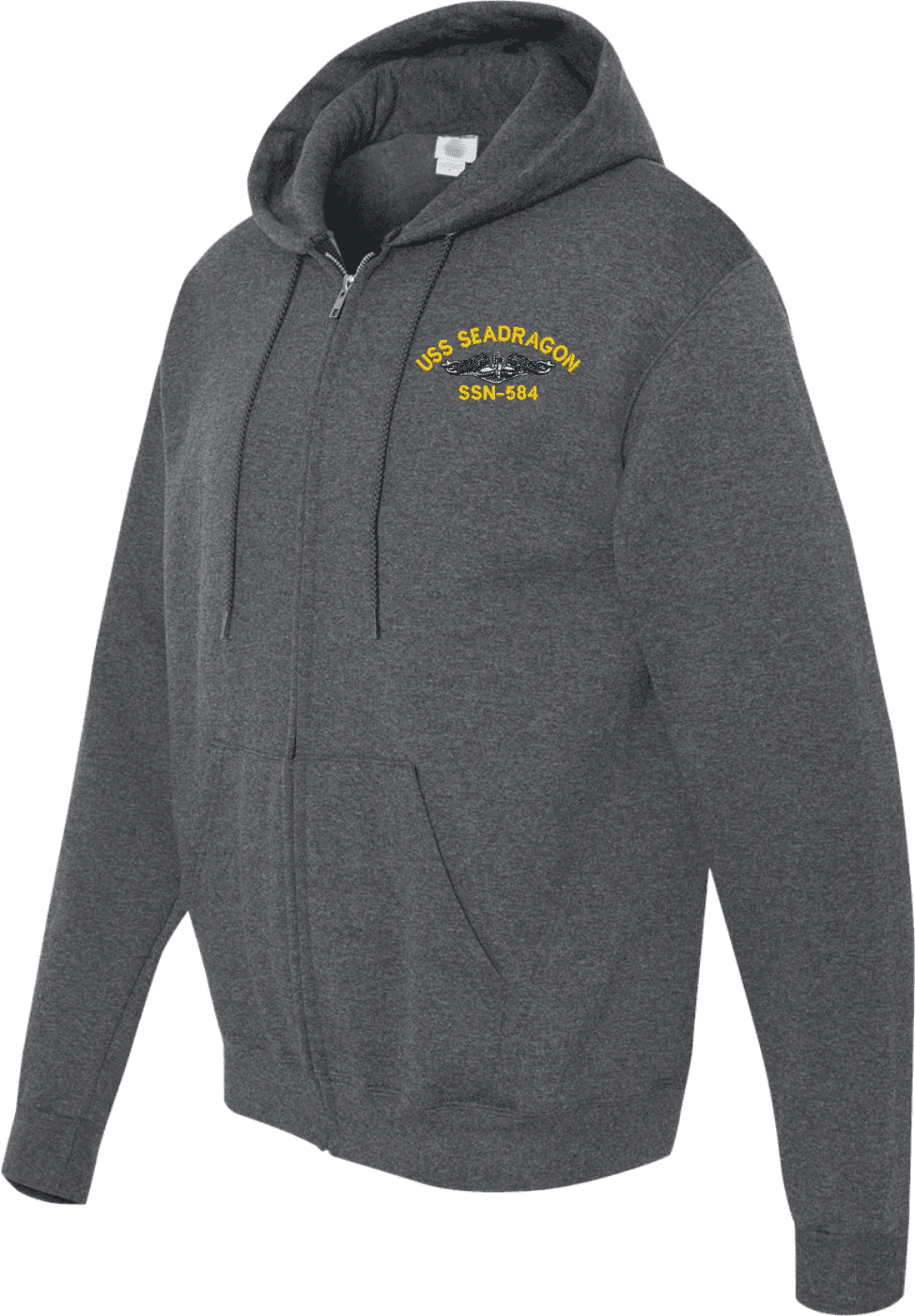 MilitaryBest has expanded its line of apparel with this custom embroidered USS Sea Leopard SS-483 with Dolphins Embroidered Zippered Hoodie. Each Hoodie is direct embroidered onto a Champion brand 9.5 oz 50/50 Cotton Poly blend. This will make an excellent addition to your wardrobe, or a great gift. Your satisfaction is Guaranteed! These quality zippered hoodies are proudly embroidered at our facilities in Scottsboro, AL. Support the Army MWR program by purchasing only from Licensed Vendors.