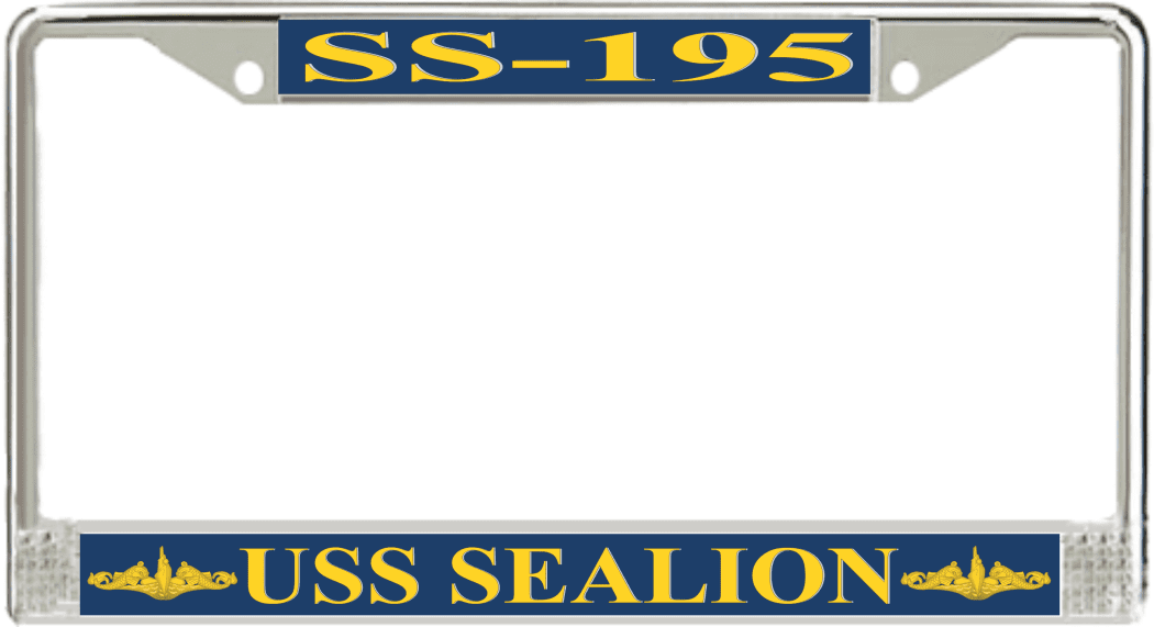 USS Sealion SS-195 License Plate Frame This USS Sealion SS-195 License Plate Frame is proudly made in the USA at our facilities in Scottsboro, Alabama. Each Frame features top and bottom sublimated design strips that are poly coated for a protective gloss finish. Please check your state and local regulations for compatibility of these frames for use on your vehicle.