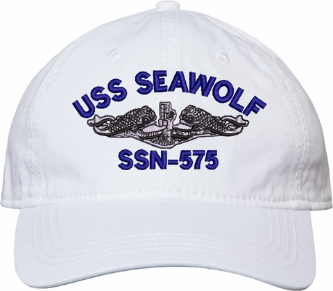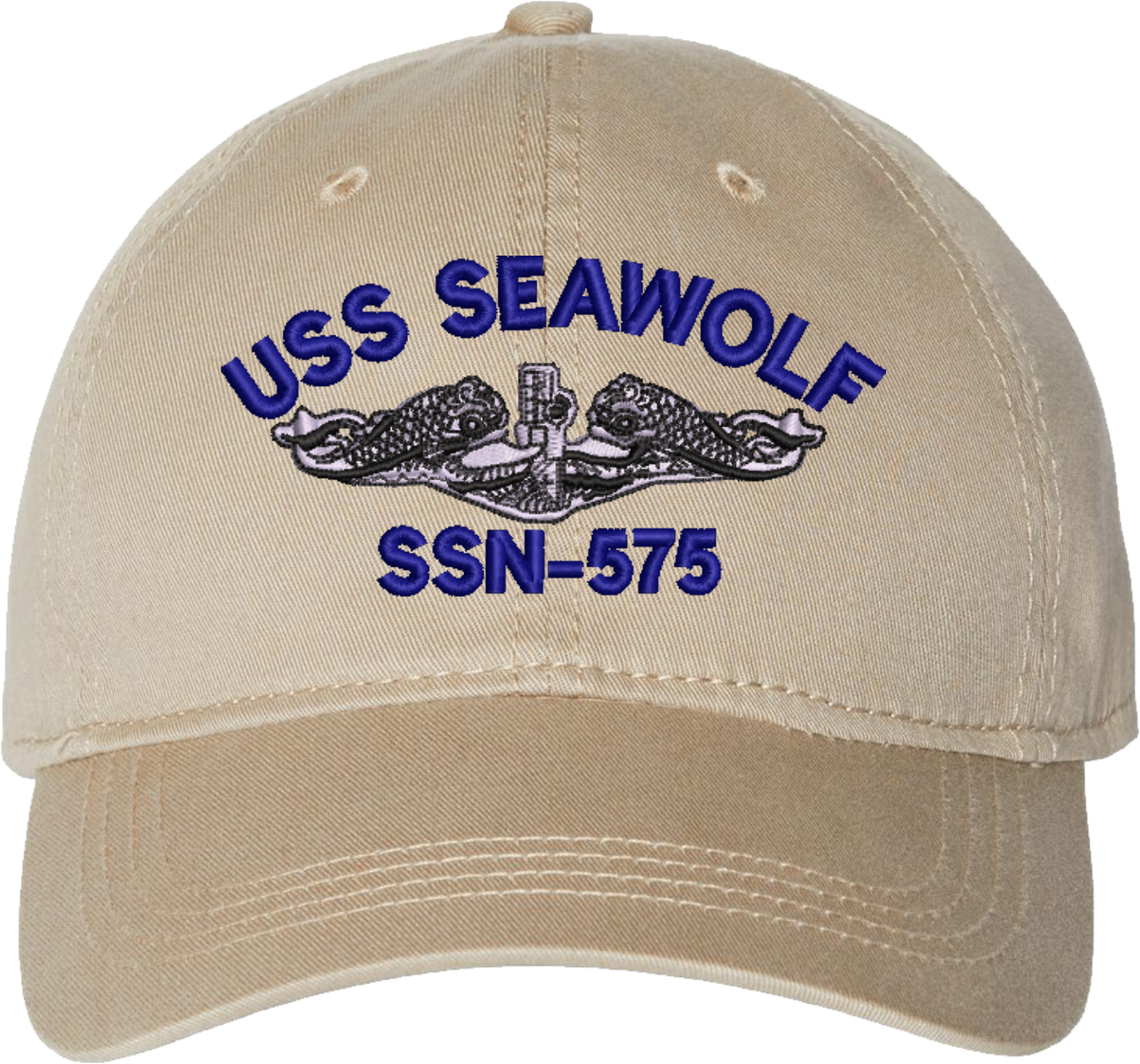Show your Navy pride with this USS Seawolf SSN-575 with Dolphins Unstructured Dad Cap from MilitaryBest. Crafted from 100% washed chino twill cotton, this six-panel, low-profile cap offers a relaxed and comfortable fit. Featuring high-quality embroidery done in our Scottsboro, Alabama facility, this cap is designed with a pre-curved visor and an adjustable tri-glide buckle closure for a perfect fit. Whether for everyday wear or as a meaningful gift, this cap is a great way to honor your own or a loved one's service.For caps ordered with custom embroidered personalized text please allow an additional 3 to 5 days production time. All custom back text will be embroidered in ALL CAPITAL LETTERS. Caps with back text or eggs are non-returnable unless there is a material defect in the cap.