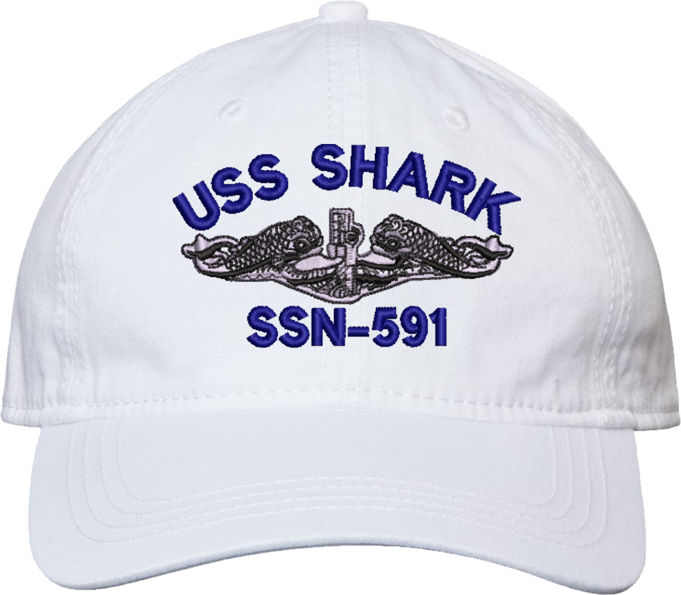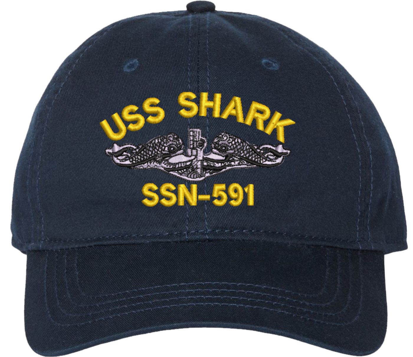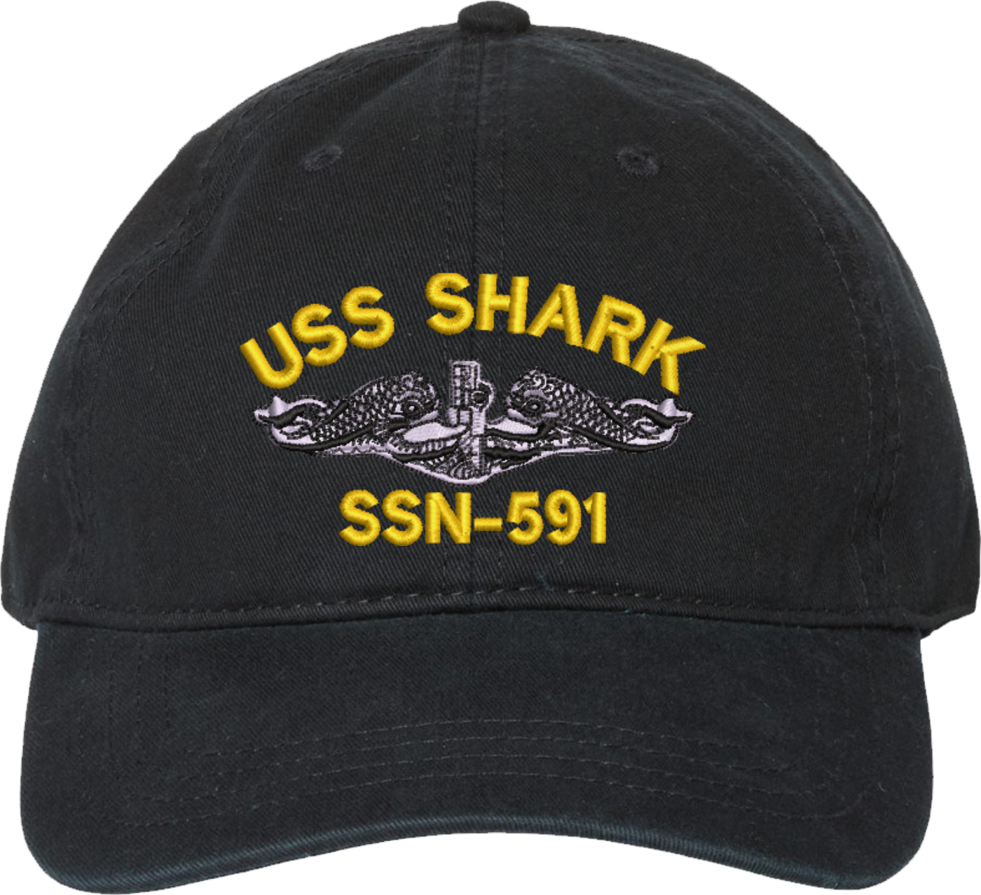 Show your Navy pride with this USS Shark SSN-591 with Dolphins Unstructured Dad Cap from MilitaryBest. Crafted from 100% washed chino twill cotton, this six-panel, low-profile cap offers a relaxed and comfortable fit. Featuring high-quality embroidery done in our Scottsboro, Alabama facility, this cap is designed with a pre-curved visor and an adjustable tri-glide buckle closure for a perfect fit. Whether for everyday wear or as a meaningful gift, this cap is a great way to honor your own or a loved one's service.For caps ordered with custom embroidered personalized text please allow an additional 3 to 5 days production time. All custom back text will be embroidered in ALL CAPITAL LETTERS. Caps with back text or eggs are non-returnable unless there is a material defect in the cap.