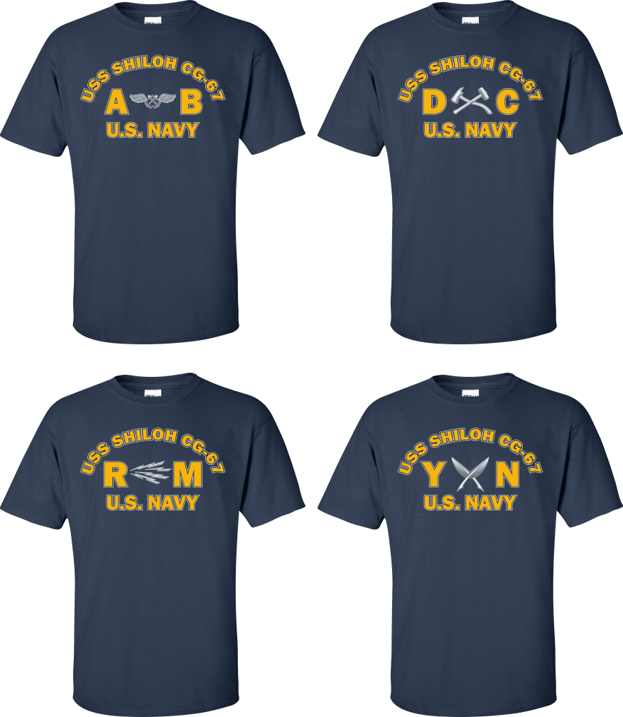 Due to disruptions in supply chains, this design will be embroidered on a Champion, Gildan, Jerzees or comparable brand.Proudly display your ship and rate with our top quality USS SHILOH CG-67 Rates t-shirts, sweatshirts, and hoodies. These fine U.S. Navy apparel items will make you the envy of your veteran buddies, or will make a fine gift! Our USS SHILOH CG-67 shirts are proudly printed in the USA!