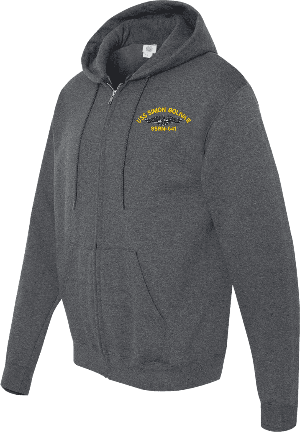 MilitaryBest has expanded its line of apparel with this custom embroidered USS Simon Bolivar SSBN-641-G with Dolphins Embroidered Zippered Hoodie. Each Hoodie is direct embroidered onto a Champion brand 9.5 oz 50/50 Cotton Poly blend. This will make an excellent addition to your wardrobe, or a great gift. Your satisfaction is Guaranteed! These quality zippered hoodies are proudly embroidered at our facilities in Scottsboro, AL. Support the Army MWR program by purchasing only from Licensed Vendors.