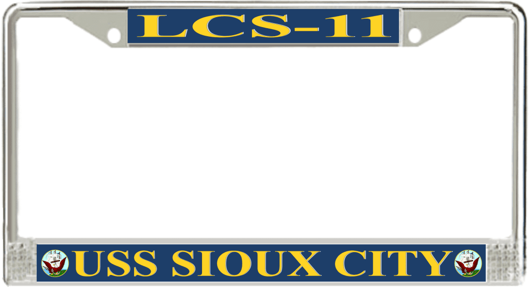 USS Sioux City LCS-11 License Plate FrameThis USS Sioux City LCS-11 License Plate Frame is proudly made in the USA at our facilities in Scottsboro, Alabama. Each of our MilitaryBest U.S. Navy Frames feature top and bottom Poly Coated Aluminum strips that are printed using sublimation which gives these quality automobile military frames a beautiful high gloss finish.