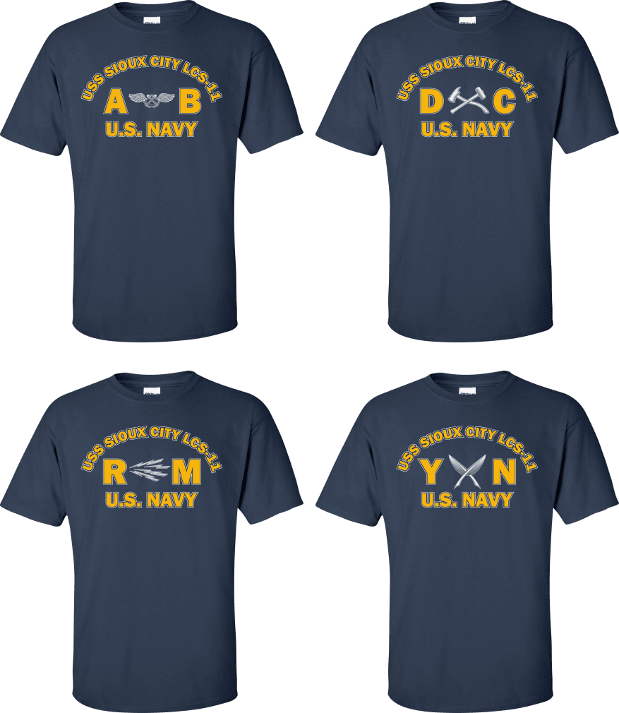 Due to disruptions in supply chains, this design will be embroidered on a Champion, Gildan, Jerzees or comparable brand.Proudly display your ship and rate with our top quality USS SIOUX CITY LCS-11 Rates t-shirts, sweatshirts, and hoodies. These fine U.S. Navy apparel items will make you the envy of your veteran buddies, or will make a fine gift! Our USS SIOUX CITY LCS-11 shirts are proudly printed in the USA!