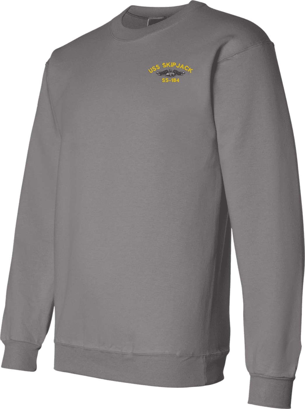 MilitaryBest has expanded its line of apparel with this custom embroidered USS Skipjack SS-184 with Dolphins Embroidered Sweatshirt. This Sweatshirt will make an excellent addition to your wardrobe, or a great gift. Your satisfaction is Guaranteed! These quality sweatshirts are proudly embroidered at our facilities in Scottsboro, AL. Support the Army MWR program by purchasing only from Licensed Vendors.