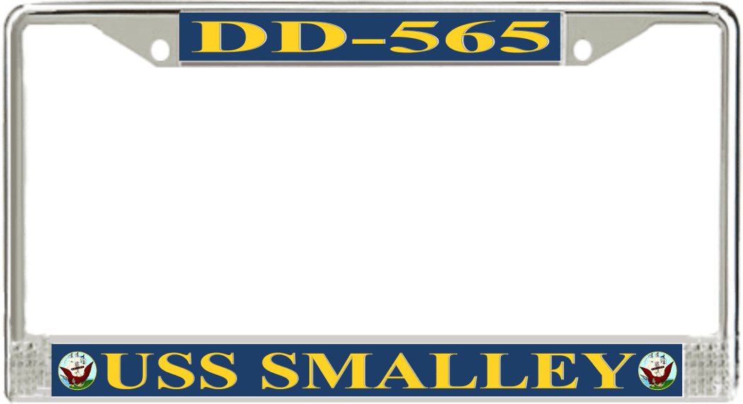 USS Smalley DD-565 License Plate FrameThis USS Smalley DD-565 License Plate Frame is proudly made in the USA at our facilities in Scottsboro, Alabama. Each of our MilitaryBest U.S. Navy Frames feature top and bottom Poly Coated Aluminum strips that are printed using sublimation which gives these quality automobile military frames a beautiful high gloss finish.