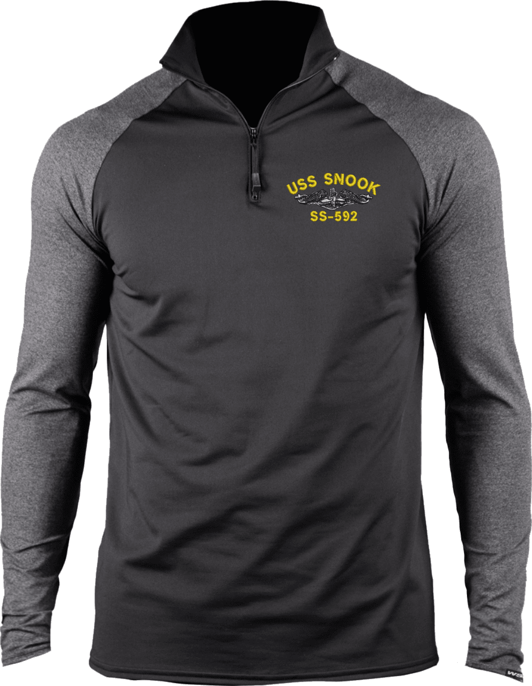 Striving to provide you with the highest quality apparel made in the United States, MilitaryBest is proud to offer this USS Snook SS-592 with Dolphins Embroidered ProWikMax 2-Tone 1/4 Zip Knit Long Sleeve Shirt. Manufactured by WSI Sportswear in Minnesota and Embroidered by us here at MilitaryBest in Alabama; this shirt is 100% Made in the USA! We aim to provide you with soft, comfortable, dry-fit, American-made clothing that allows you to be your best. ProWikMax is 92% Polyester, 8% Spandex, and made to be both durable and flattering.*For washing we recommend machine wash cold with like colors, and line dry.PRODUCT FEATURES