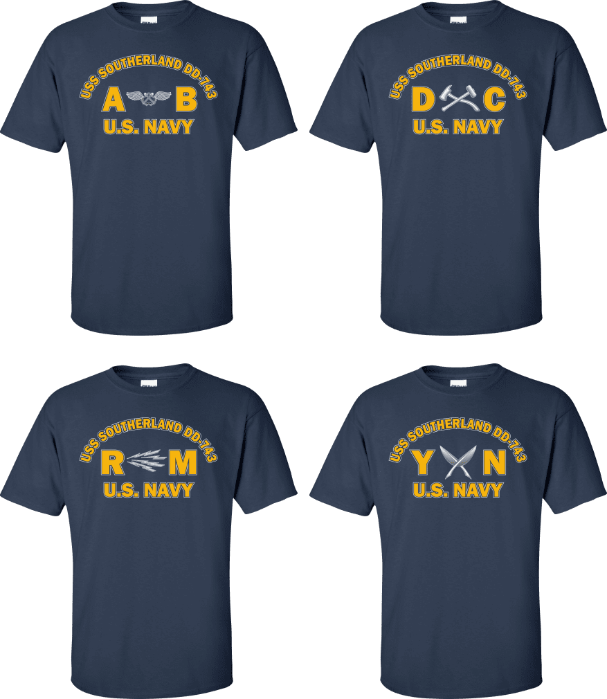 Due to disruptions in supply chains, this design will be embroidered on a Champion, Gildan, Jerzees or comparable brand.Proudly display your ship and rate with our top quality USS SOUTHERLAND DD-743 Rates t-shirts, sweatshirts, and hoodies. These fine U.S. Navy apparel items will make you the envy of your veteran buddies, or will make a fine gift! Our USS SOUTHERLAND DD-743 shirts are proudly printed in the USA!