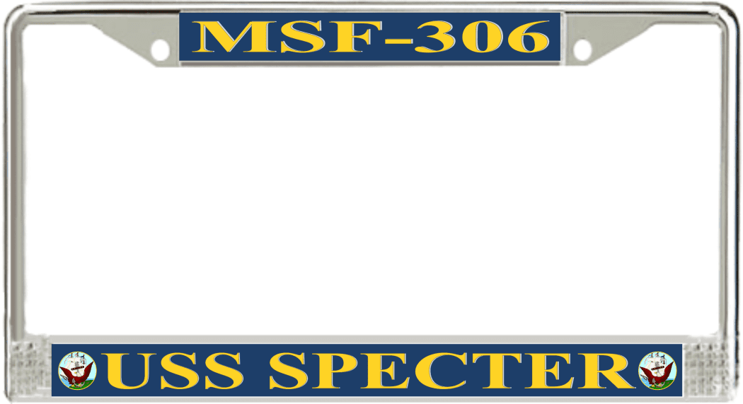 USS Specter MSF-306 License Plate FrameThis USS Specter MSF-306 License Plate Frame is proudly made in the USA at our facilities in Scottsboro, Alabama. Each of our MilitaryBest U.S. Navy Frames feature top and bottom Poly Coated Aluminum strips that are printed using sublimation which gives these quality automobile military frames a beautiful high gloss finish.