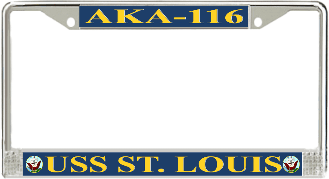 USS St. Louis AKA-116 License Plate FrameThis USS St. Louis AKA-116 License Plate Frame is proudly made in the USA at our facilities in Scottsboro, Alabama. Each of our MilitaryBest U.S. Navy Frames feature top and bottom Poly Coated Aluminum strips that are printed using sublimation which gives these quality automobile military frames a beautiful high gloss finish.