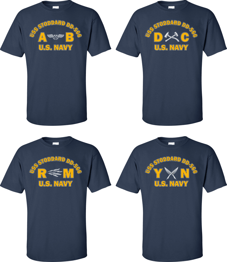Due to disruptions in supply chains, this design will be embroidered on a Champion, Gildan, Jerzees or comparable brand.Proudly display your ship and rate with our top quality USS STODDARD DD-566 Rates t-shirts, sweatshirts, and hoodies. These fine U.S. Navy apparel items will make you the envy of your veteran buddies, or will make a fine gift! Our USS STODDARD DD-566 shirts are proudly printed in the USA!