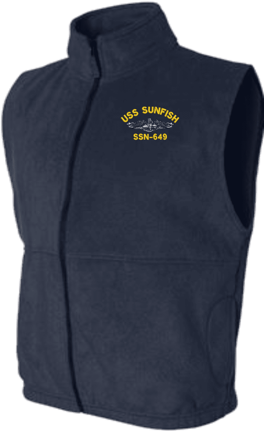 Note: Due to supply chain disruptions, some colors and sizes may not be available in the same brand, in these cases a brand of comarable quality will be used. Feel free to call in advance of your order, with questions you may have.MilitaryBest is proud to offer this qualityUSS Sunfish SSN-649 with Dolphins Embroidered Fleece Vest. This Fleece Vest features a convertible collar with dyed-to-match zipper pull, oversized nylon reinforced slash pockets, and an elastic hem. It is made using a 100% anti-pill polyester Fleece Vest. This Fleece Vest will make an excellent addition to your wardrobe, or a quality gift. Your satisfaction is guaranteed! These quality fleece vests are proudly embroidered at our facilities in Scottsboro, AL. Support the Army MWR program by purchasing only from Licensed Vendors.