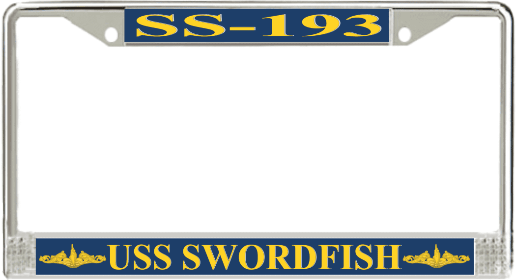 USS Swordfish SS-193 License Plate Frame This USS Swordfish SS-193 License Plate Frame is proudly made in the USA at our facilities in Scottsboro, Alabama. Each Frame features top and bottom sublimated design strips that are poly coated for a protective gloss finish. Please check your state and local regulations for compatibility of these frames for use on your vehicle.