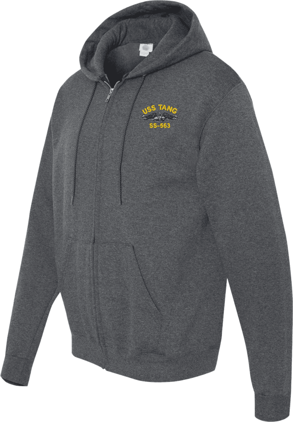 MilitaryBest has expanded its line of apparel with this custom embroidered USS Tang SS-563 with Dolphins Embroidered Zippered Hoodie. Each Hoodie is direct embroidered onto a Champion brand 9.5 oz 50/50 Cotton Poly blend. This will make an excellent addition to your wardrobe, or a great gift. Your satisfaction is Guaranteed! These quality zippered hoodies are proudly embroidered at our facilities in Scottsboro, AL. Support the Army MWR program by purchasing only from Licensed Vendors.