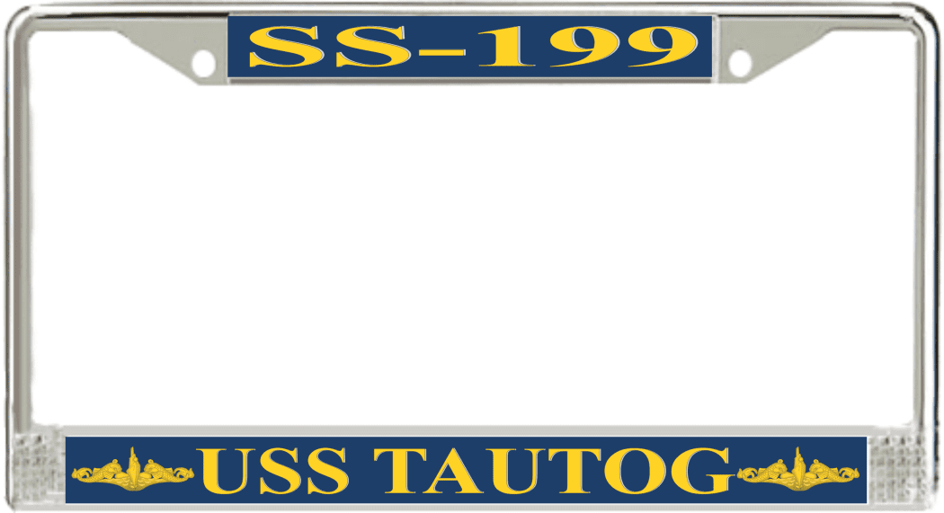 USS Tautog SS-199 License Plate Frame This USS Tautog SS-199 License Plate Frame is proudly made in the USA at our facilities in Scottsboro, Alabama. Each Frame features top and bottom sublimated design strips that are poly coated for a protective gloss finish. Please check your state and local regulations for compatibility of these frames for use on your vehicle.
