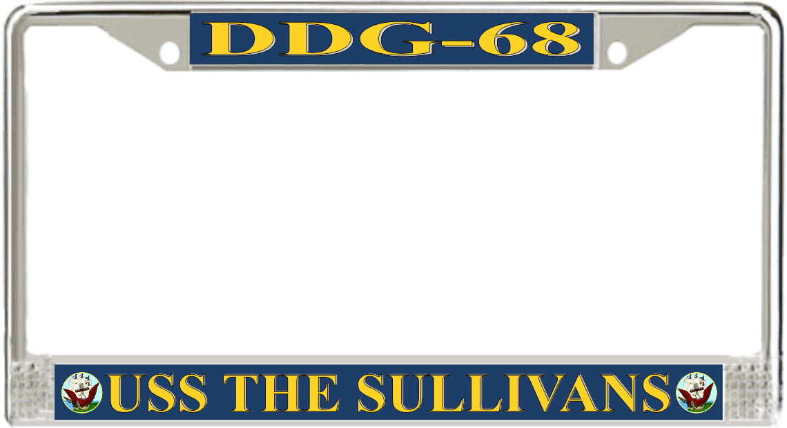 USS The Sullivans DDG-68 License Plate FrameThis USS The Sullivans DDG-68 License Plate Frame is proudly made in the USA at our facilities in Scottsboro, Alabama. Each of our MilitaryBest U.S. Navy Frames feature top and bottom Poly Coated Aluminum strips that are printed using sublimation which gives these quality automobile military frames a beautiful high gloss finish.