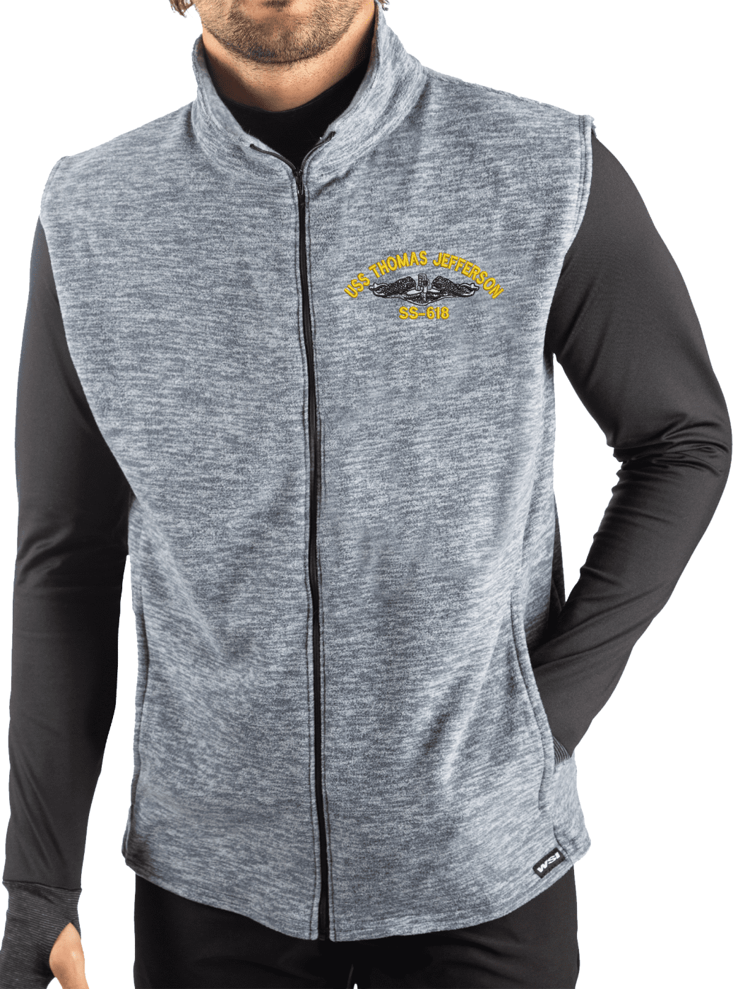 MilitaryBest is proud to offer this USS Thomas Jefferson SS-618 with Dolphins Embroidered Polar Fleece Vest. This quality vest is Manufactured by WSI Sportswear in Minnesota and Embroidered by our MilitaryBest team in Northeast Alabama. We remain fully committed to growing our line of 100% Made in the USA products. Each U.S. Air Force Retired Vest is offered in Heather Gray and Heather Blue.PRODUCT FEATURES