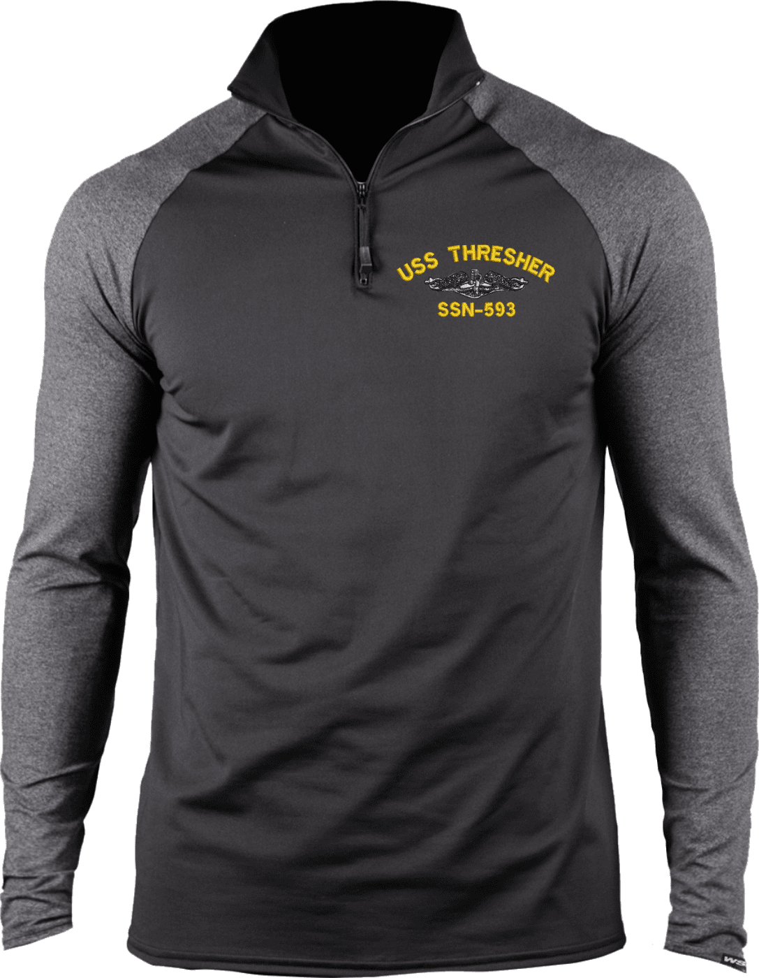 Striving to provide you with the highest quality apparel made in the United States, MilitaryBest is proud to offer this USS Thresher SSN-593 with Dolphins Embroidered ProWikMax 2-Tone 1/4 Zip Knit Long Sleeve Shirt. Manufactured by WSI Sportswear in Minnesota and Embroidered by us here at MilitaryBest in Alabama; this shirt is 100% Made in the USA! We aim to provide you with soft, comfortable, dry-fit, American-made clothing that allows you to be your best. ProWikMax is 92% Polyester, 8% Spandex, and made to be both durable and flattering.*For washing we recommend machine wash cold with like colors, and line dry.PRODUCT FEATURES