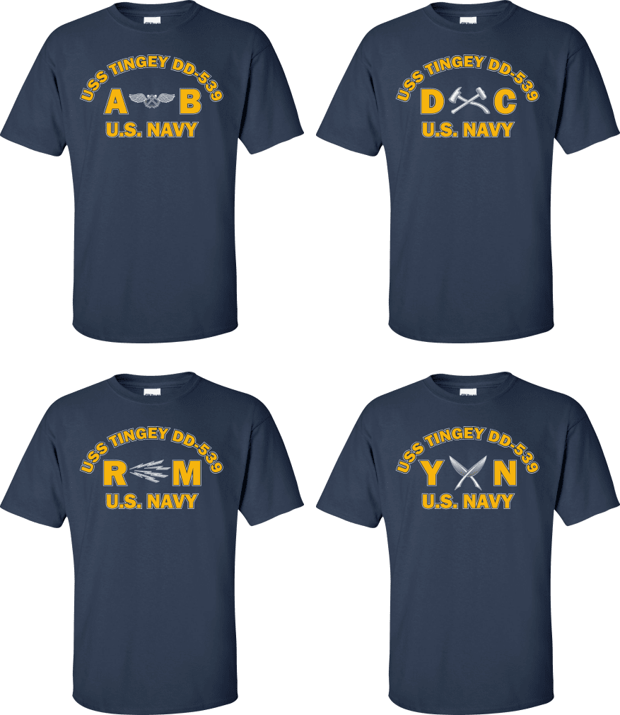 Due to disruptions in supply chains, this design will be embroidered on a Champion, Gildan, Jerzees or comparable brand.Proudly display your ship and rate with our top quality USS TINGEY DD-539 Rates t-shirts, sweatshirts, and hoodies. These fine U.S. Navy apparel items will make you the envy of your veteran buddies, or will make a fine gift! Our USS TINGEY DD-539 shirts are proudly printed in the USA!