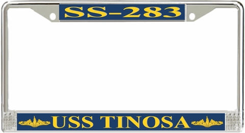 USS Tinosa SS-283 License Plate Frame This USS Tinosa SS-283 License Plate Frame is proudly made in the USA at our facilities in Scottsboro, Alabama. Each Frame features top and bottom sublimated design strips that are poly coated for a protective gloss finish. Please check your state and local regulations for compatibility of these frames for use on your vehicle.