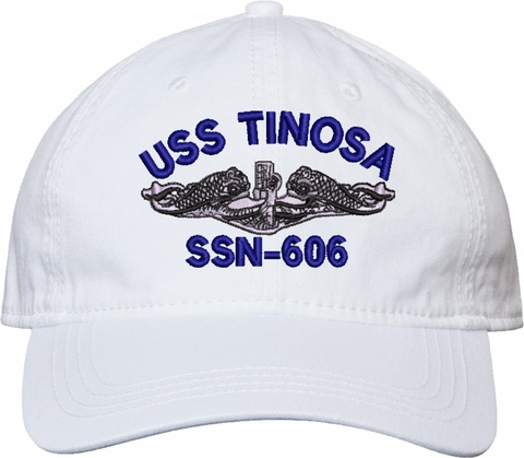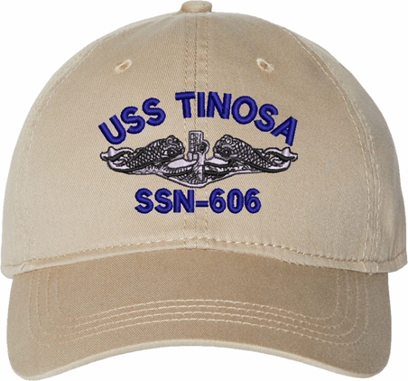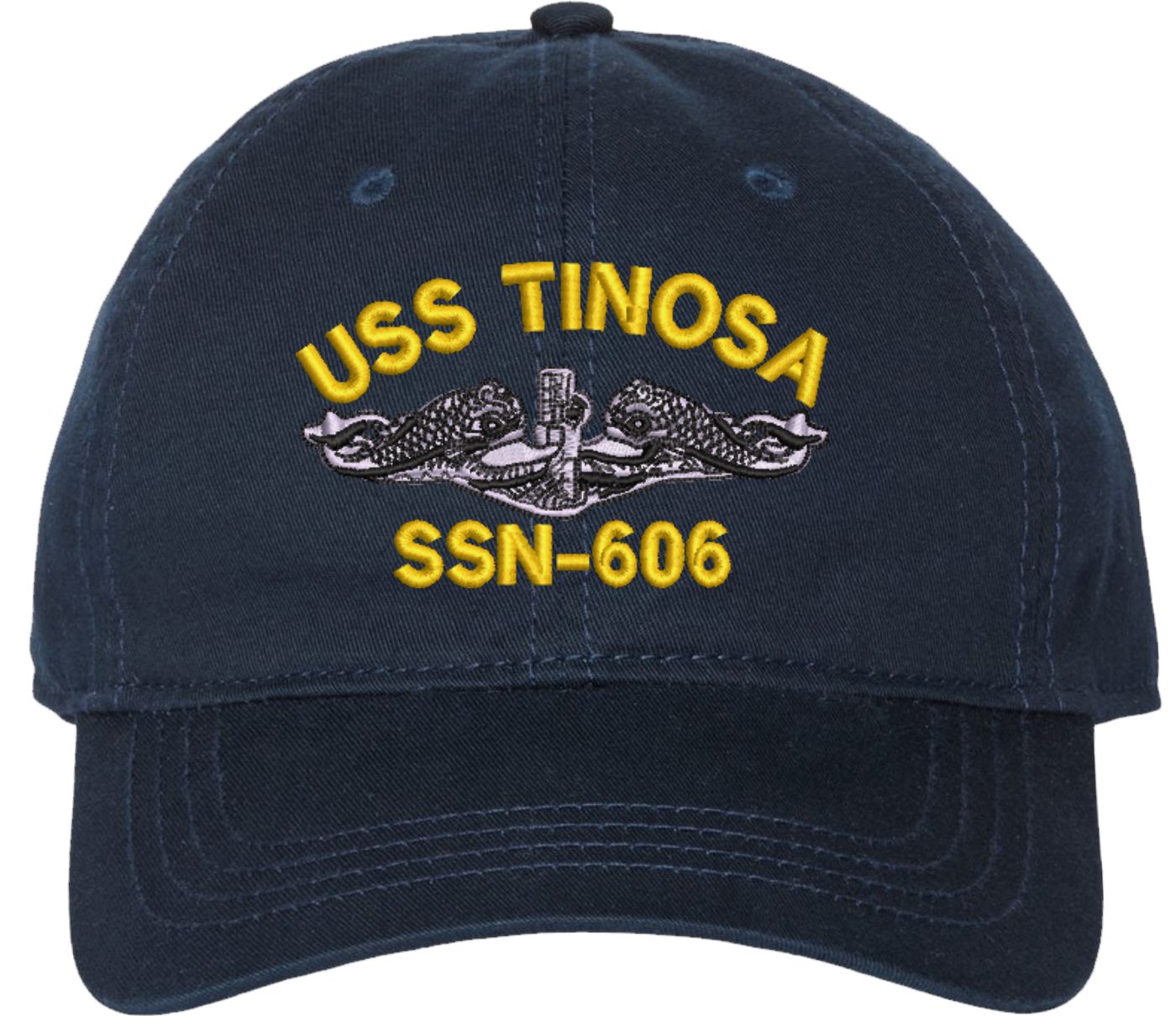 Show your Navy pride with this USS Tinosa SSN-606 with Dolphins Unstructured Dad Cap from MilitaryBest. Crafted from 100% washed chino twill cotton, this six-panel, low-profile cap offers a relaxed and comfortable fit. Featuring high-quality embroidery done in our Scottsboro, Alabama facility, this cap is designed with a pre-curved visor and an adjustable tri-glide buckle closure for a perfect fit. Whether for everyday wear or as a meaningful gift, this cap is a great way to honor your own or a loved one's service.For caps ordered with custom embroidered personalized text please allow an additional 3 to 5 days production time. All custom back text will be embroidered in ALL CAPITAL LETTERS. Caps with back text or eggs are non-returnable unless there is a material defect in the cap.