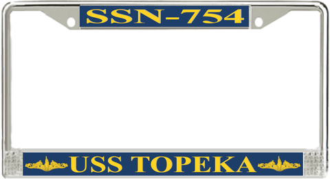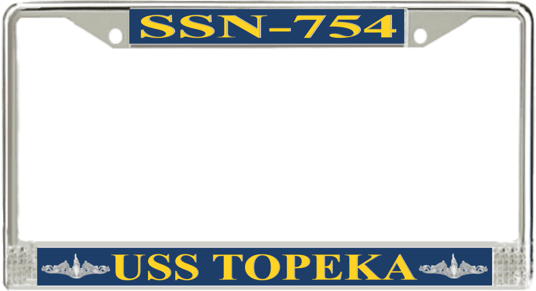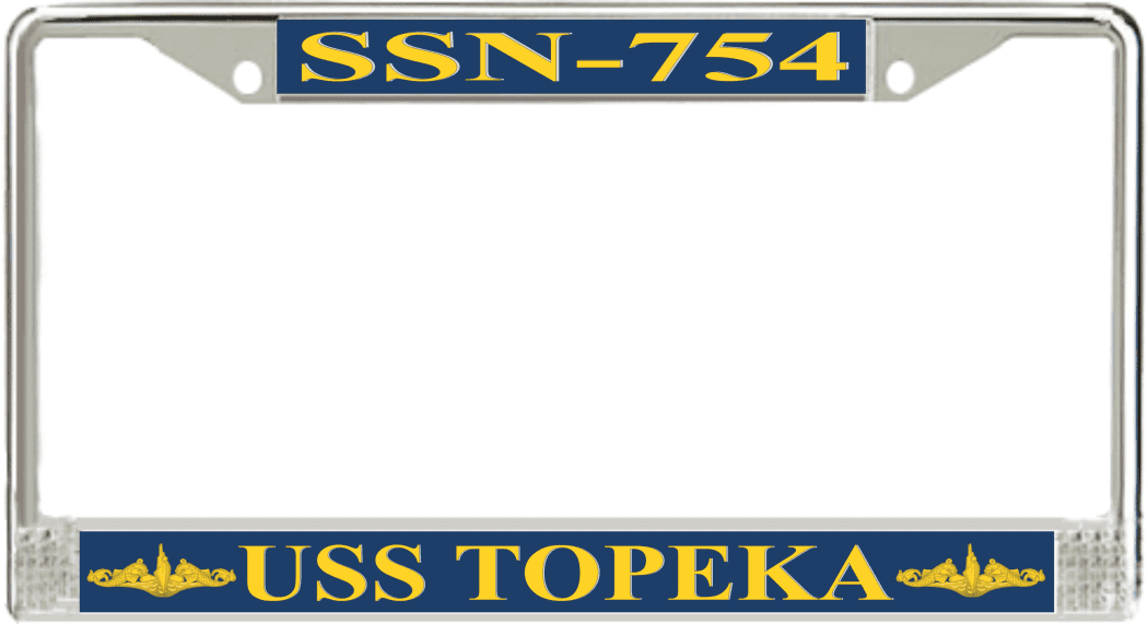 USS Topeka SSN-754 License Plate Frame This USS Topeka SSN-754 License Plate Frame is proudly made in the USA at our facilities in Scottsboro, Alabama. Each Frame features top and bottom sublimated design strips that are poly coated for a protective gloss finish. Please check your state and local regulations for compatibility of these frames for use on your vehicle.