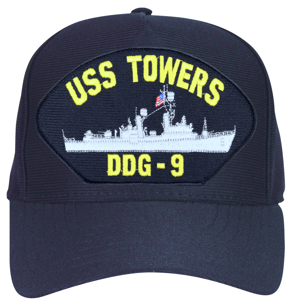 This USS Towers DDG-9 Ball Cap Hat is an emblematic, poly, dark under the visor cap. Each has an adjustable strap, and is available as a 5 panel high profile or 6 panel low profile cap. All MilitaryBest caps are fully guaranteed. Some people call them Military Covers or Military Hats. This Military Cap is proudly Made in The U.S.A.For caps ordered with custom embroidered personalized text please allow an additional 3 to 5 days production time. All custom back text will be embroidered in ALL CAPITAL LETTERS. Caps with back text or eggs are non-returnable unless there is a material defect in the cap. If a style is not selected the cap will be made using a high profile style cap as pictured.