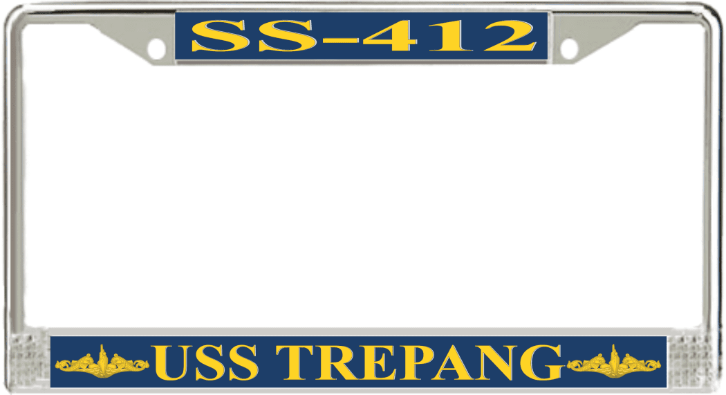 USS Trepang SS-412 License Plate Frame This USS Trepang SS-412 License Plate Frame is proudly made in the USA at our facilities in Scottsboro, Alabama. Each Frame features top and bottom sublimated design strips that are poly coated for a protective gloss finish. Please check your state and local regulations for compatibility of these frames for use on your vehicle.