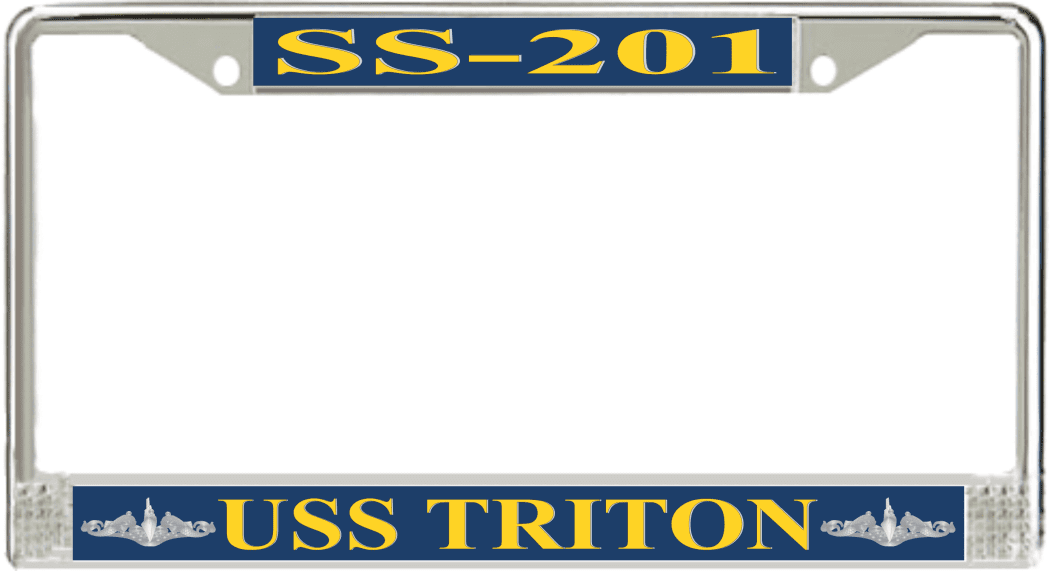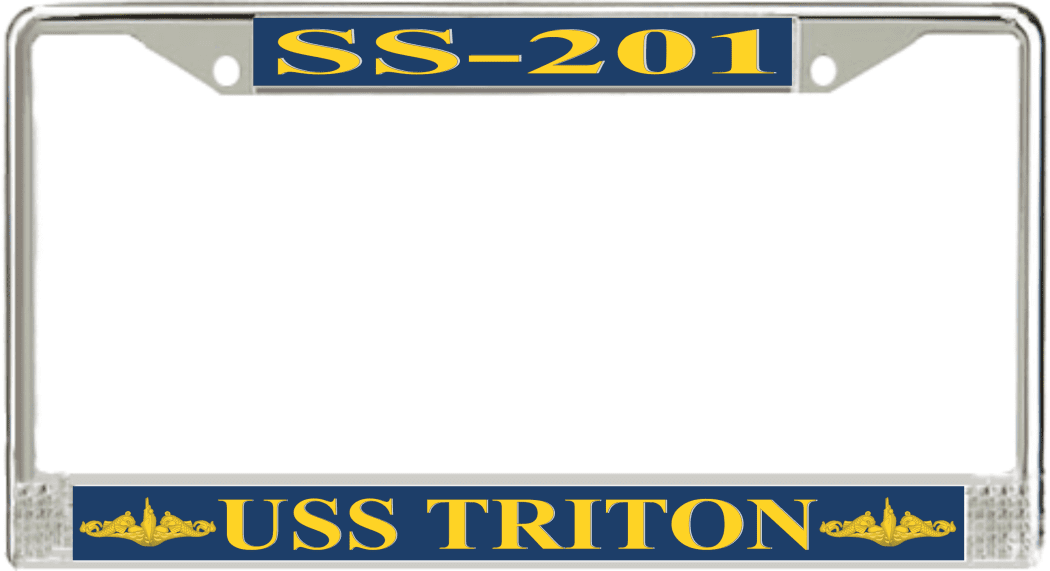 USS Triton SS-201 License Plate Frame This USS Triton SS-201 License Plate Frame is proudly made in the USA at our facilities in Scottsboro, Alabama. Each Frame features top and bottom sublimated design strips that are poly coated for a protective gloss finish. Please check your state and local regulations for compatibility of these frames for use on your vehicle.
