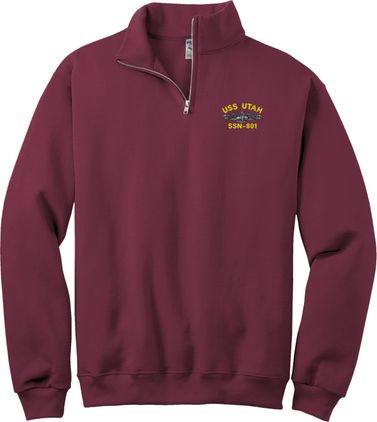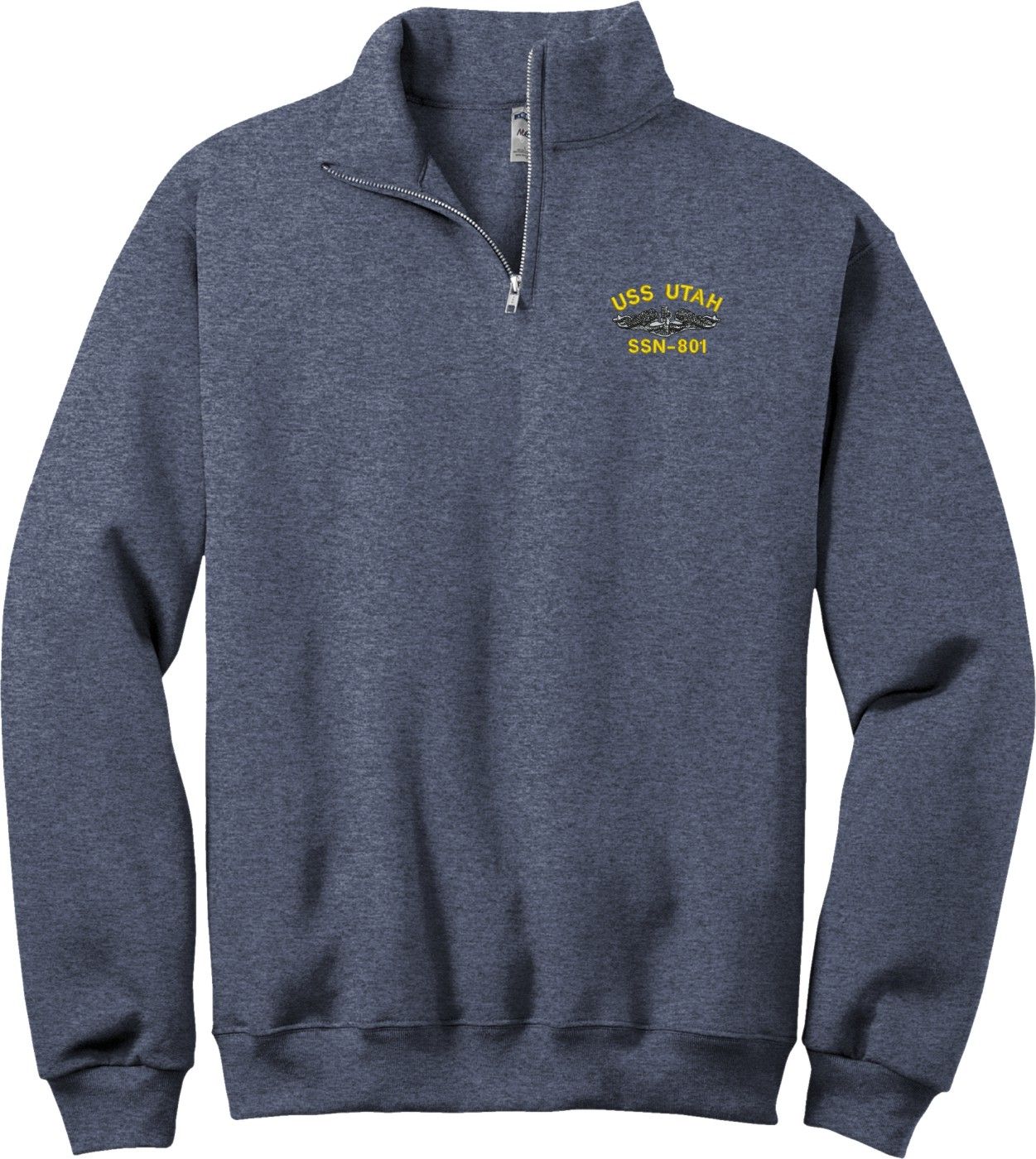 MilitaryBest is proud to offer this USS Utah SSN-801 with Dolphins Embroidered Quarter-Zip Pullover. This quality shirt is embroidered by our MilitaryBest team in Northeast Alabama.PRODUCT FEATURES