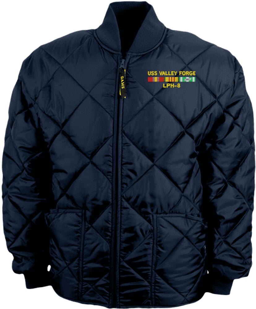 MilitaryBest is proud to offer this quality USS Valley Forge LPH-8 with Vietnam Service Ribbons Bravest Jacket. This Game Sportswear Jacket will make an excellent addition to your wardrobe or a quality gift. This Jacket is custom embroidered at our facilities in Scottsboro, Alabama.Features: