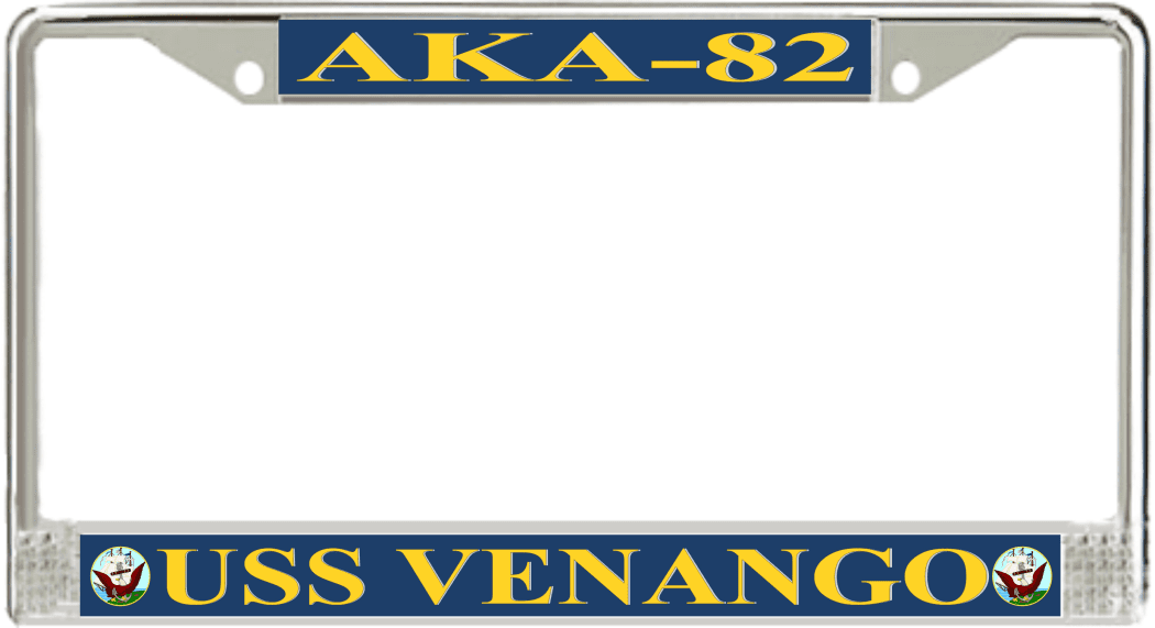 USS Venango AKA-82 License Plate FrameThis USS Venango AKA-82 License Plate Frame is proudly made in the USA at our facilities in Scottsboro, Alabama. Each of our MilitaryBest U.S. Navy Frames feature top and bottom Poly Coated Aluminum strips that are printed using sublimation which gives these quality automobile military frames a beautiful high gloss finish.