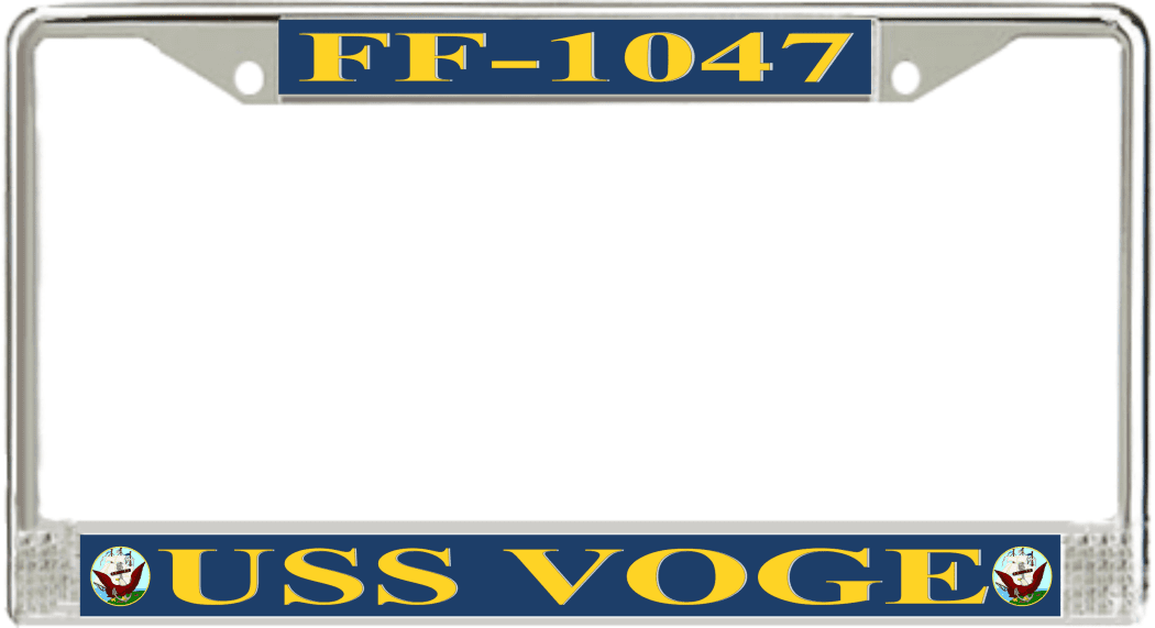 USS Voge FF-1047 License Plate FrameThis USS Voge FF-1047 License Plate Frame is proudly made in the USA at our facilities in Scottsboro, Alabama. Each of our MilitaryBest U.S. Navy Frames feature top and bottom Poly Coated Aluminum strips that are printed using sublimation which gives these quality automobile military frames a beautiful high gloss finish.