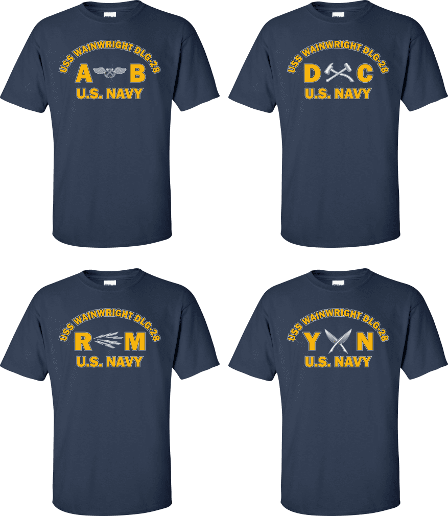 Due to disruptions in supply chains, this design will be embroidered on a Champion, Gildan, Jerzees or comparable brand.Proudly display your ship and rate with our top quality USS WAINWRIGHT DLG-28 Rates t-shirts, sweatshirts, and hoodies. These fine U.S. Navy apparel items will make you the envy of your veteran buddies, or will make a fine gift! Our USS WAINWRIGHT DLG-28 shirts are proudly printed in the USA!